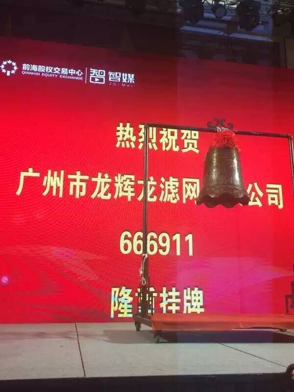 上周五(1月22日)廣州市輝龍濾網有限公司掛牌成功,全體員工舉行了掛牌儀式,掛牌代碼:666911。儀式上,優秀的領導、員工在臺上手執小錘,進行了敲鐘儀式,整個儀式氣氛十分的活躍,員工也為公司掛牌成功十分高興、激動。這對于將來輝龍公司的長遠發展都是十分有益的。