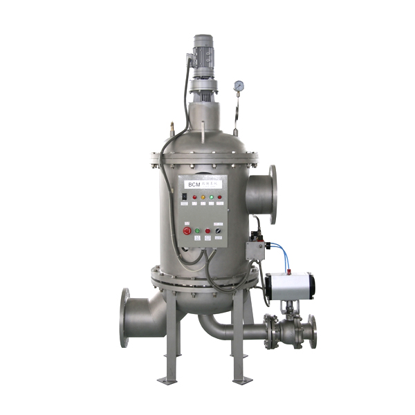本實用新型是一種利用濾網直接截取水中雜質,去除水中懸浮物、顆粒物,降低濁度,凈化水質,減少系統污垢、菌藻、銹蝕等產生,從而凈化水質,保護系統其它設備正常工作的精密設備。由于智能(PLC,PAC)設計,系統能自動識別雜質沉積程度,給排污閥信號自動排污。
